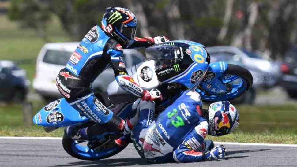 Массовый завал в Lukey Height привел к красным флагам в начале гонки Moto3